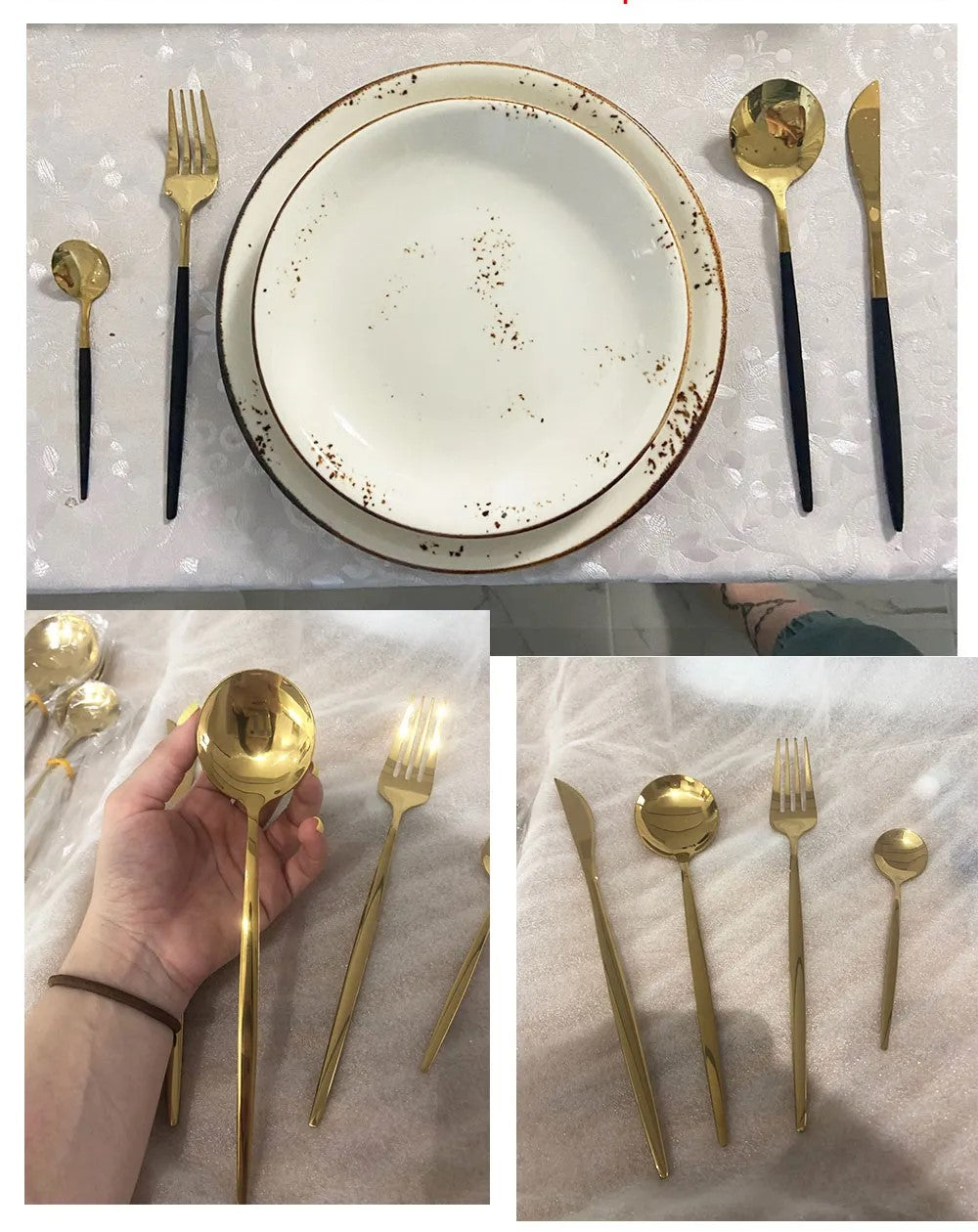 24Pcs Black Handle Golden Cutlery Stainless Steel Set