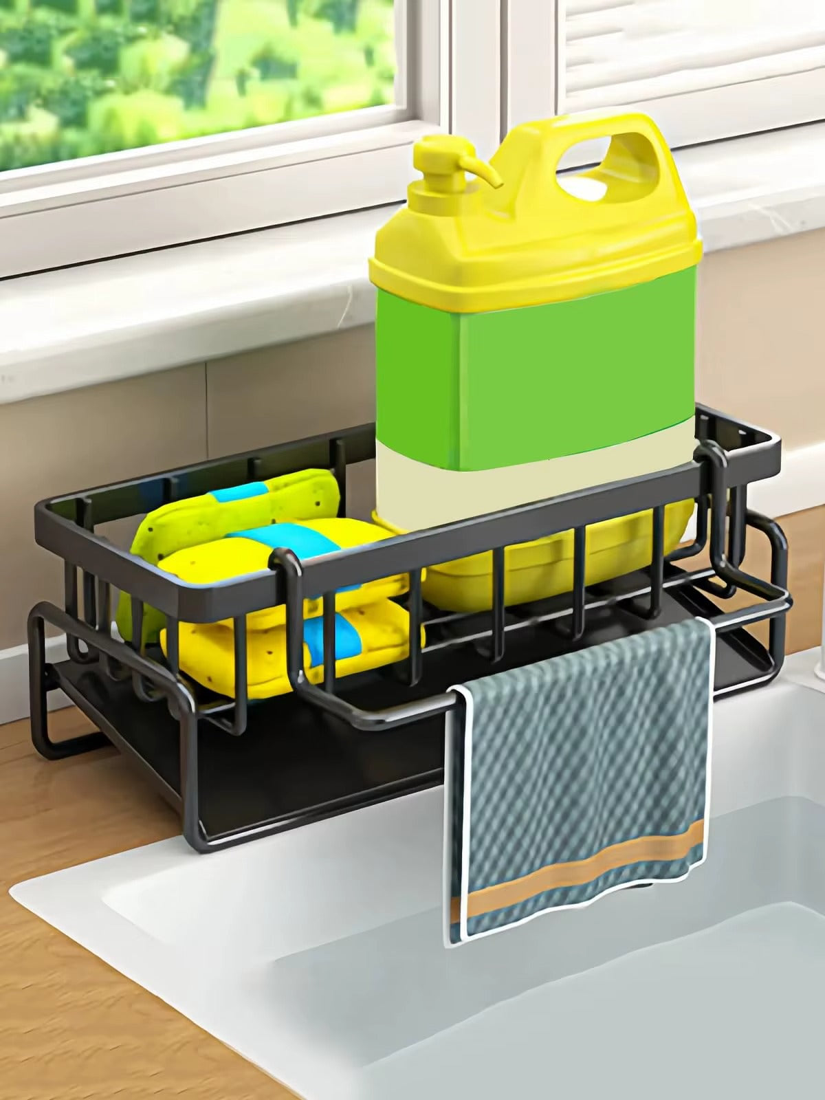 Perfect for storing dish sponges, scrubbers, dishcloths, brushes, and even sink drain plugs, helping keep your countertop neat and clutter-free.